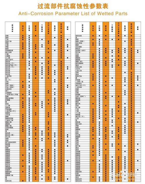 2、腐蚀的液态依据浸蚀水平,选择不锈钢、塑料或氟塑料的材料。可参考物料的腐蚀性能参数。在不确定性物料特点的状况下,提议选择和输送管路一致的材料。